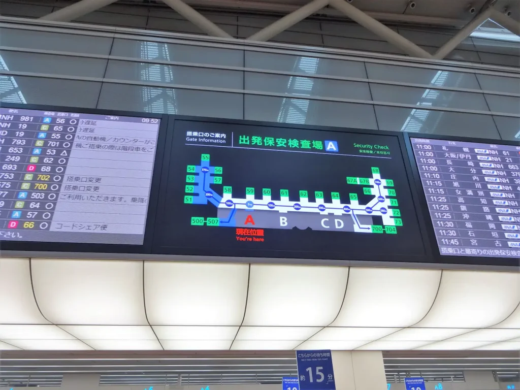 出発ロビー左寄りの保安検査場でチェックインしました。搭乗口はいちばん右端です。