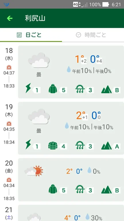 「登山天気」アプリでAやBが連続する日(近い日)を狙ったので、割安のチケットは購入できませんでした。
