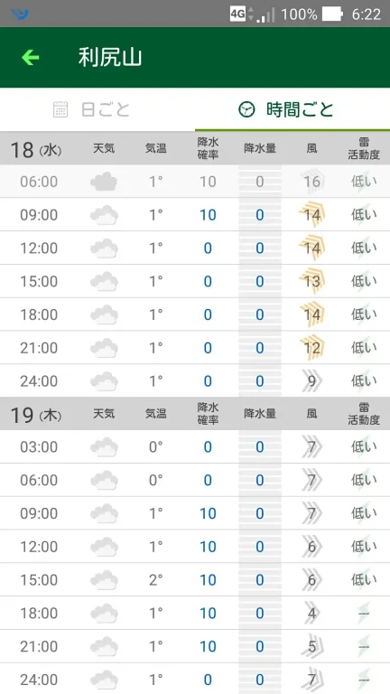 ドピーカンではありませんが、登山予定の19日は気温が0℃前後で風が弱い。20日もまずまずです。