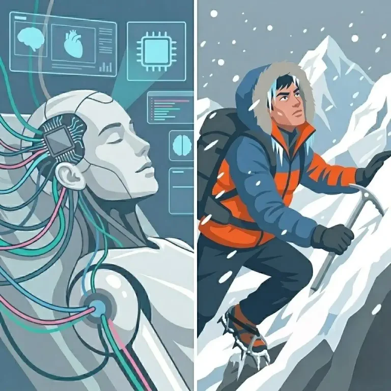 いつか、完璧な機能を持つ人型ロボットが「私が5分であなたを山頂まで安全にお運びしますが、なぜわざわざご自身の足で登るのですか?」と、心底不思議そうに尋ねてくる日が来るかもしれません。