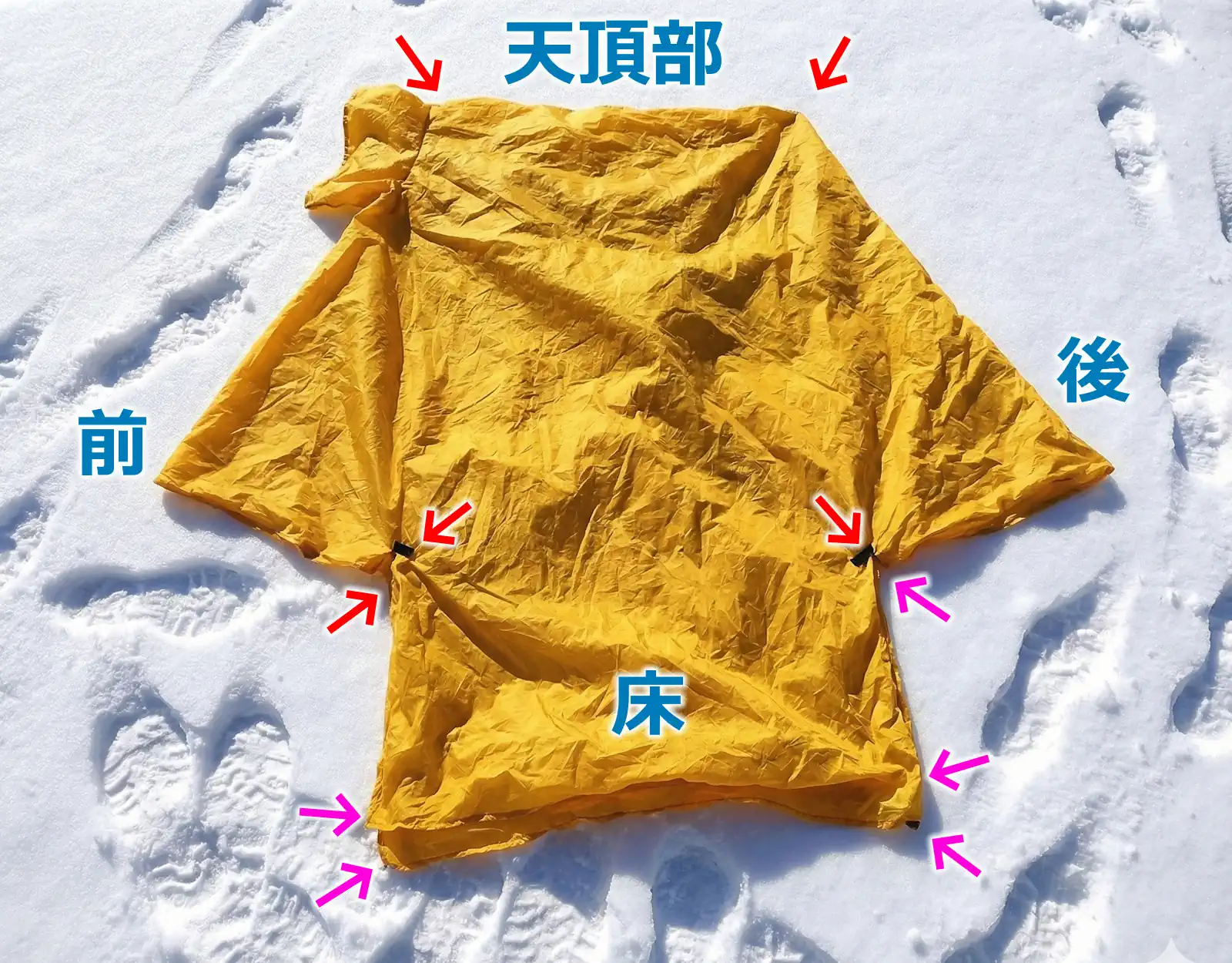 しかし、要所要所に付いているループを利用すると、家型に設営することが可能です。