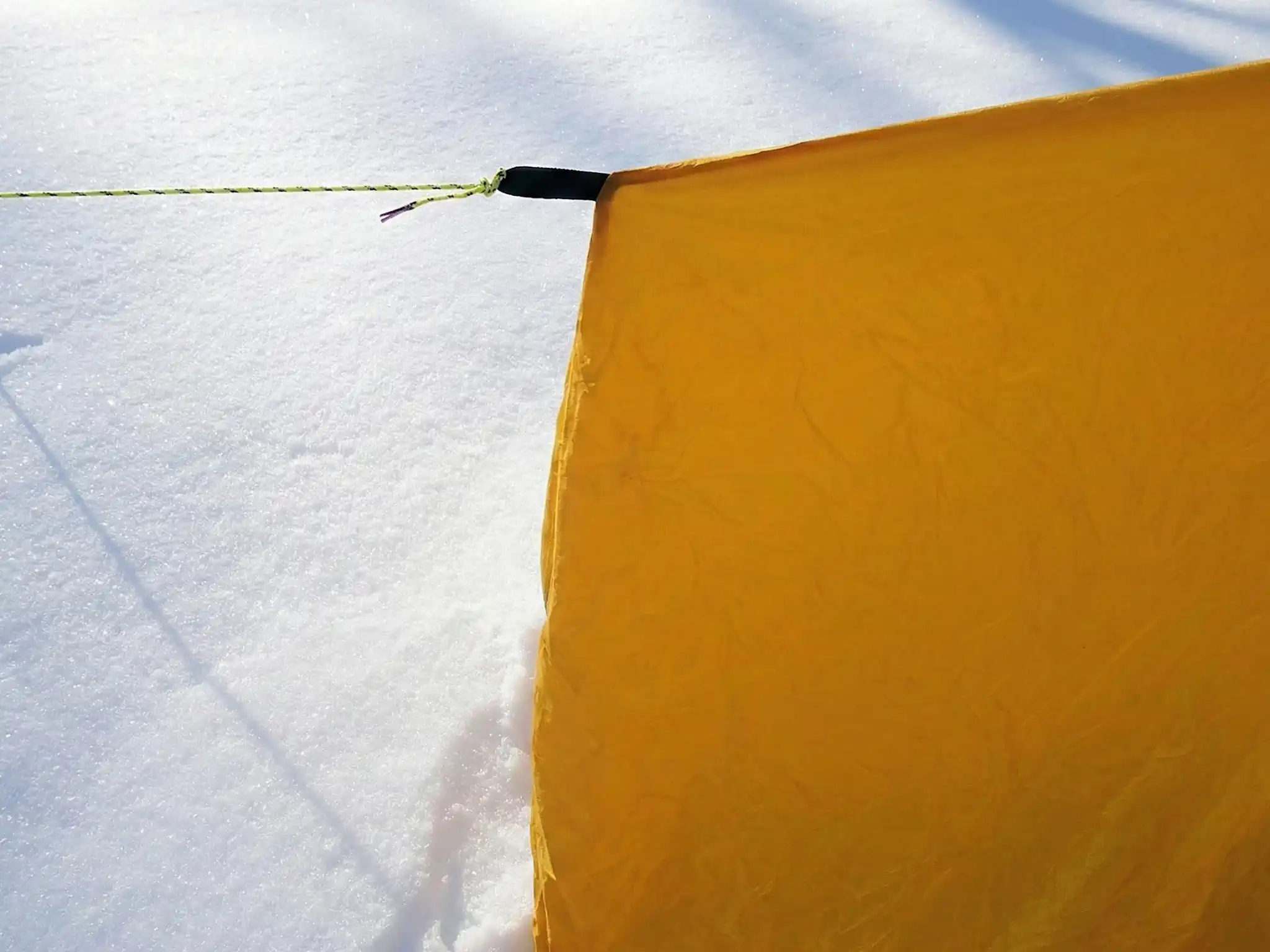 「ビバークツェルト ソロ」はポンチョとして使いやすいように最低限の生地の面積しかありません。頭からかぶってビバークする際、生地を身体や荷物の下に巻き込んで隙間風をしっかり防ぐにはやや力不足です。