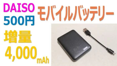 ダイソーがまた凄いモバイルバッテリーを売り出しました。なんと容量4,000mAhで価格が500円です。数年前に容量2,000mAhで価格が300円という商品を出して評判になりましたが、さらにコストパフォーマンスが高い。