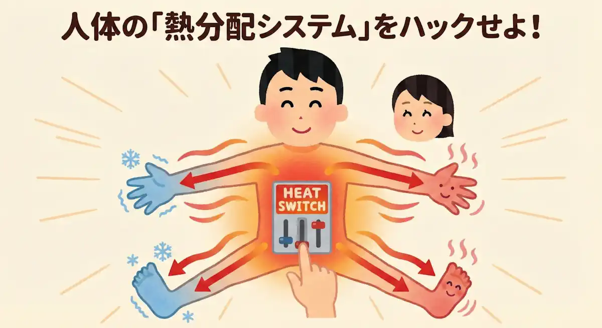 - カーディガンの勝因: 胴体を温めたことで、脳が「熱が余っている」と判断。放熱のために血管を開放し、結果として温かい血液が足先までドバドバと流れ込んだのです。