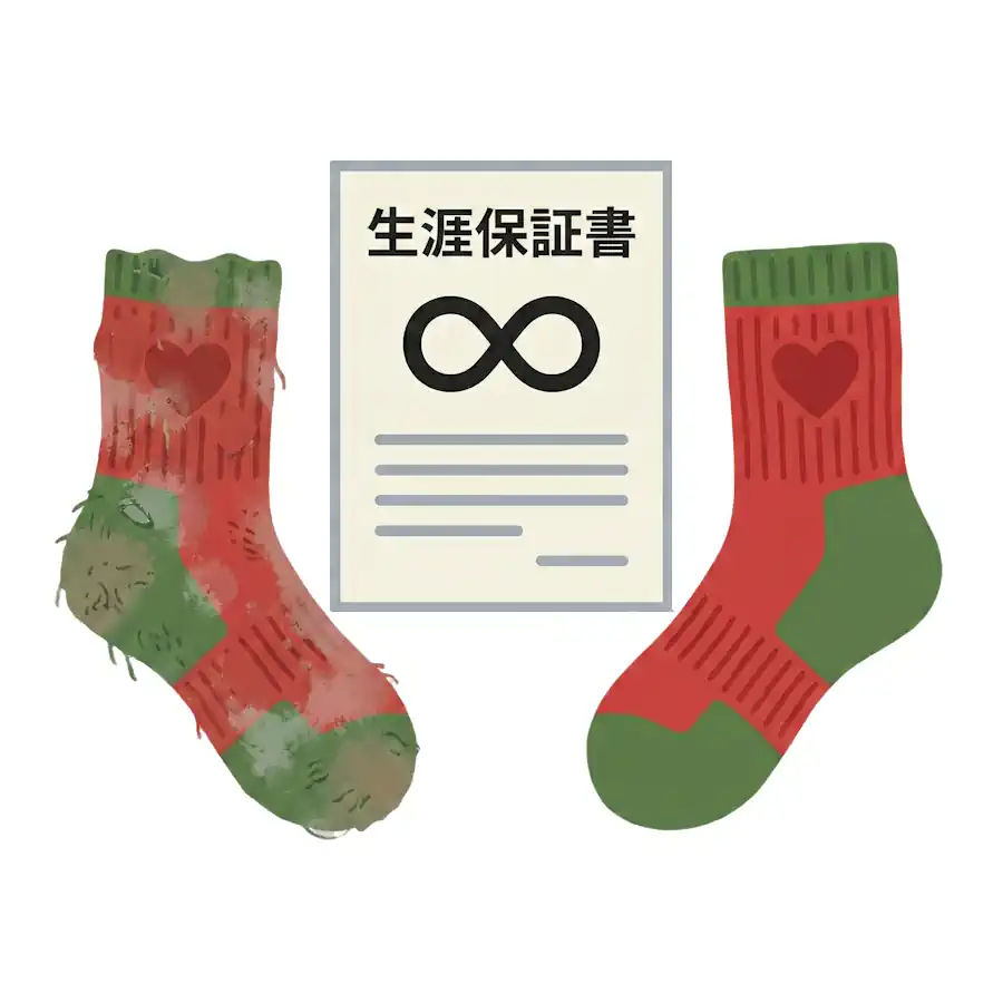 | Darn Tough | 生涯保証 | 穴が空いたら新品交換(無期限)。圧倒的な耐久性。 |