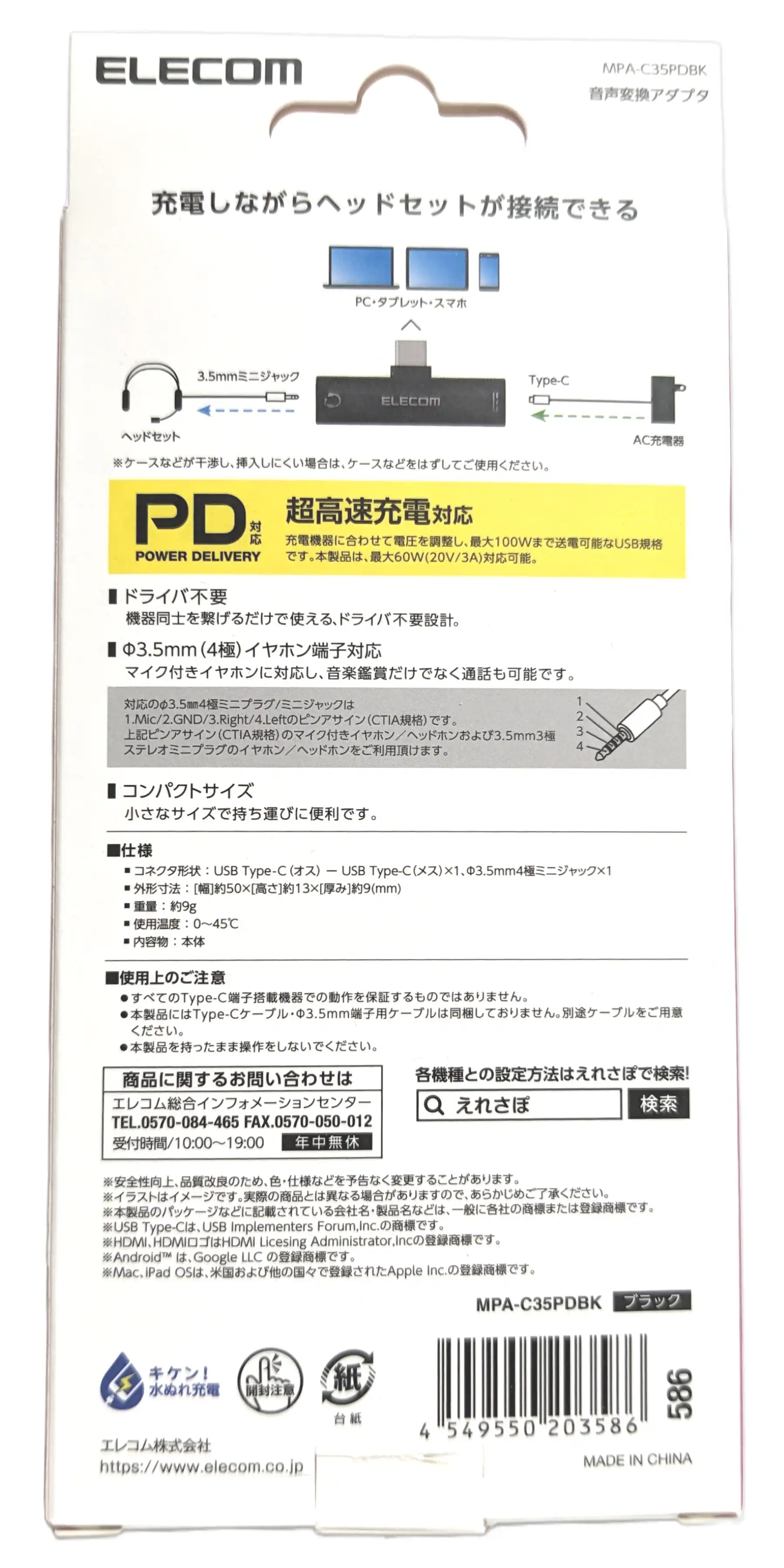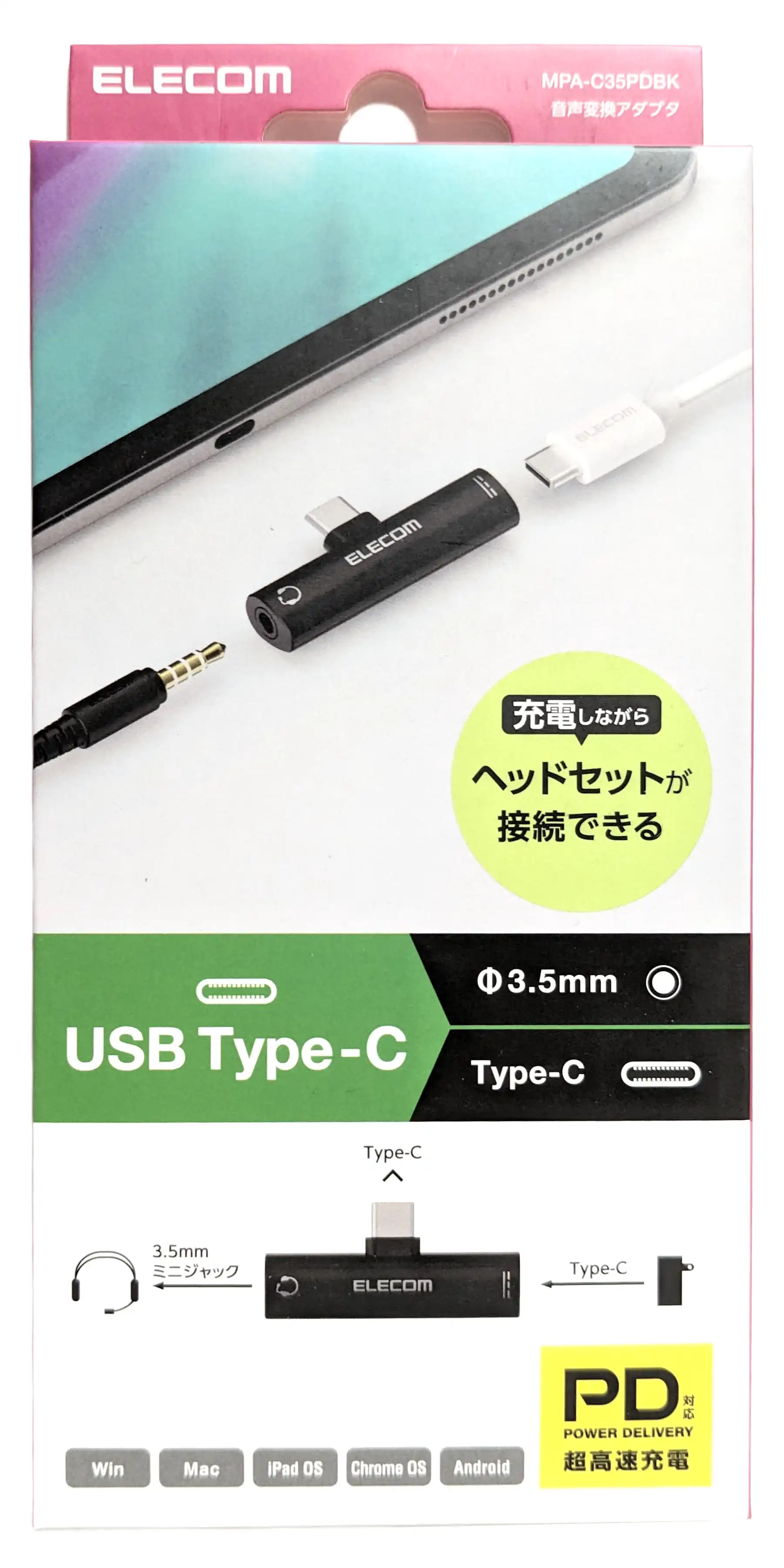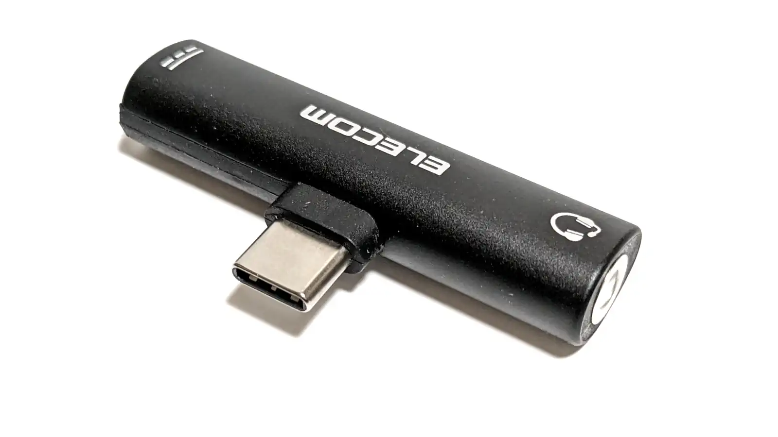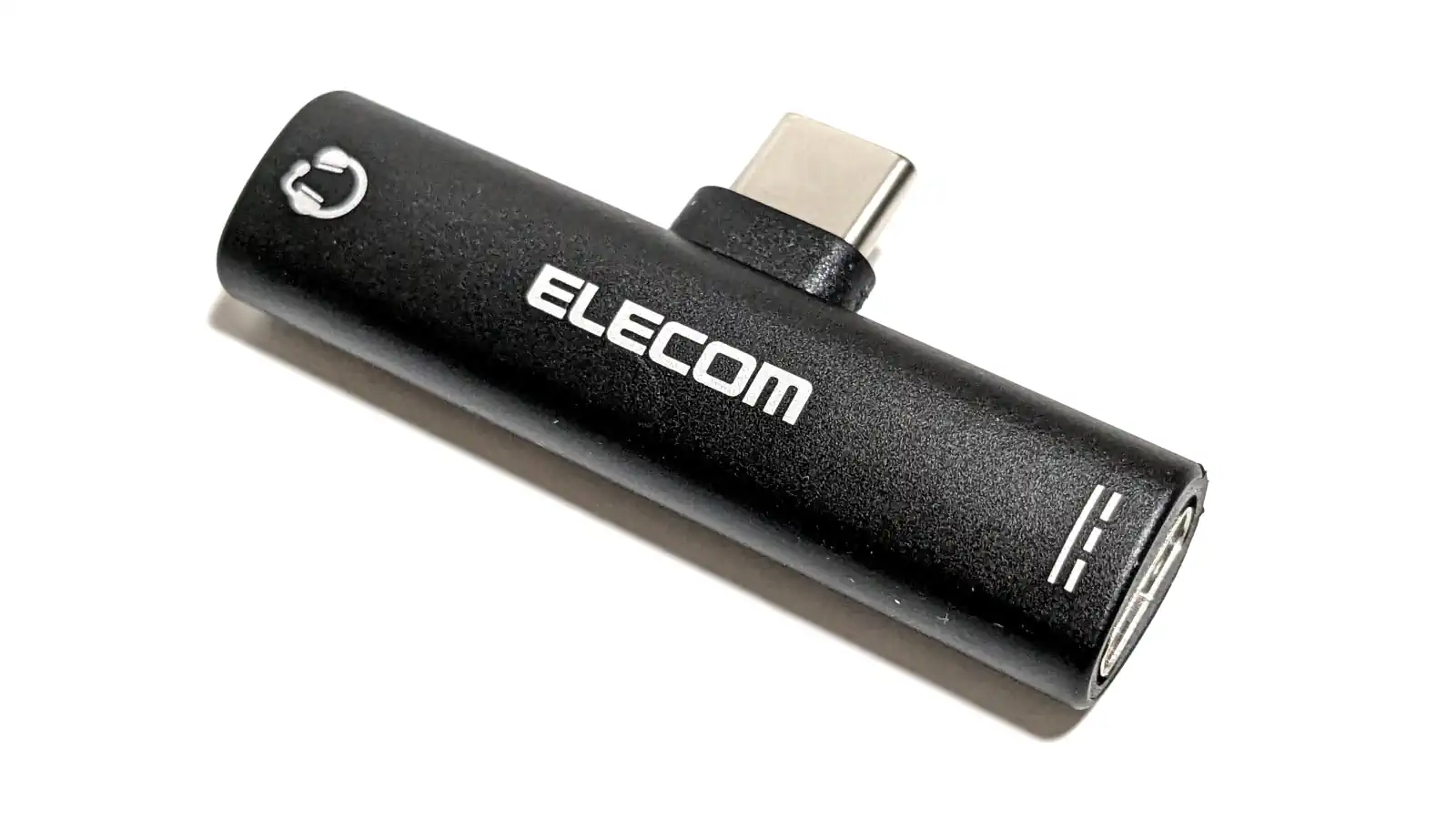 「ELECOM」のロゴに正対して、左がイヤホンジャック、右がUSB Type-Cメス端子です。