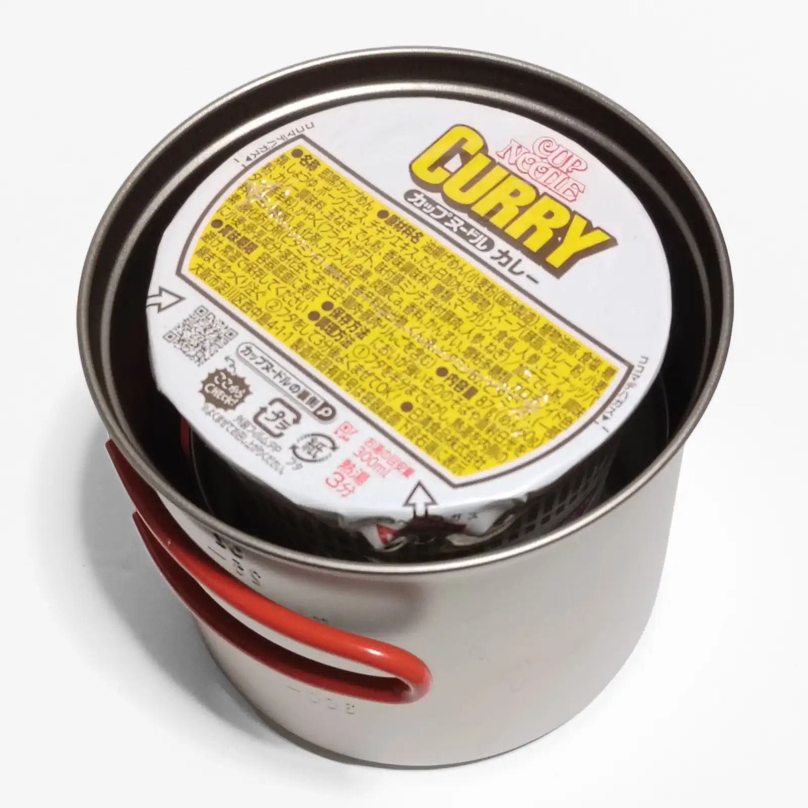 カップヌードルの高さ(約10.7cm)は、Deep pot 900のナベ深さ(9.5cm)より少し高いですが、「フタの深さ(3cm)」がその飛び出し分を完璧にカバーします。