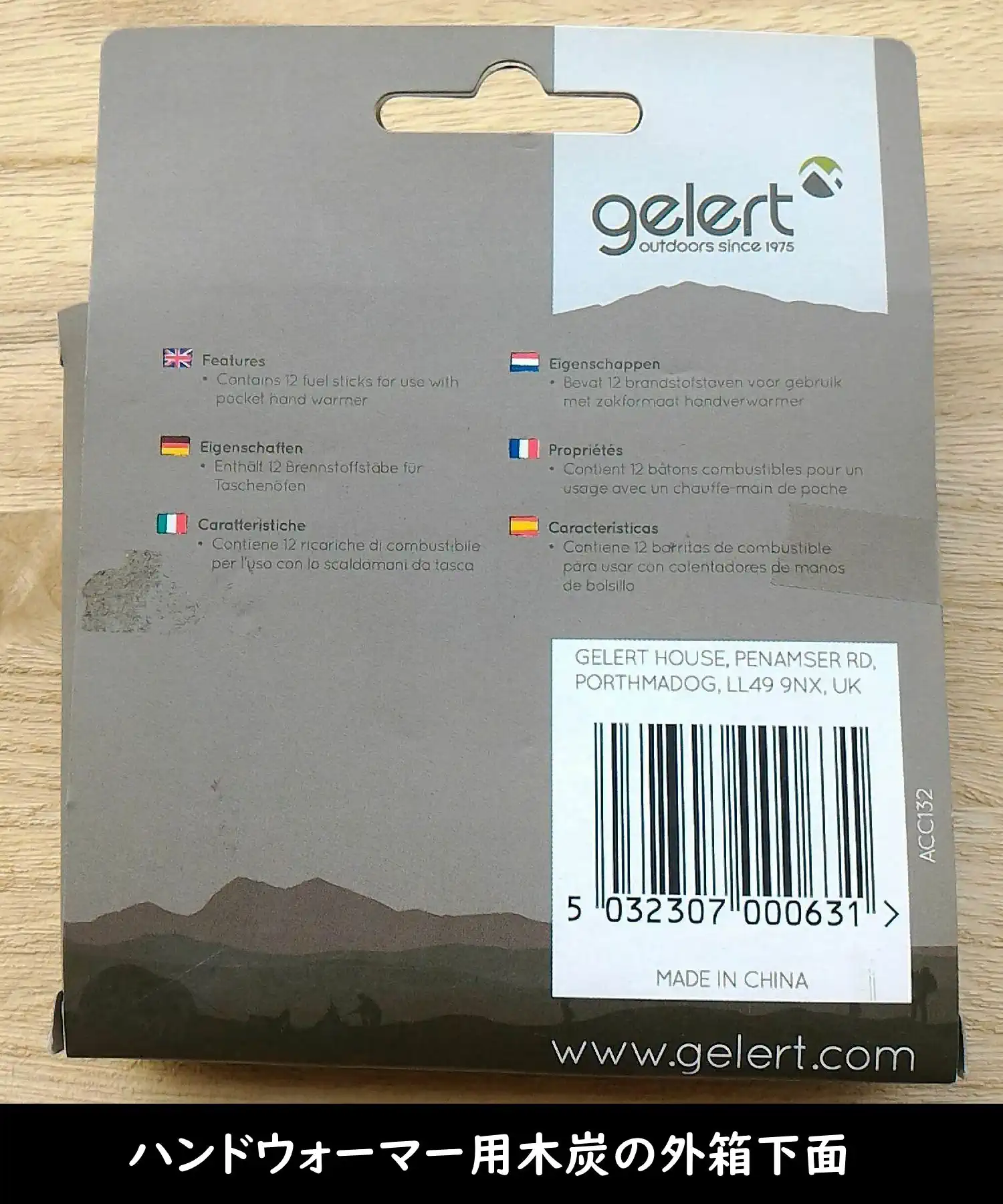 「UK」の文字が見えます。gelertはイギリスの会社です。製造元は「MADE IN CHINA」(中国製)と記載されています。