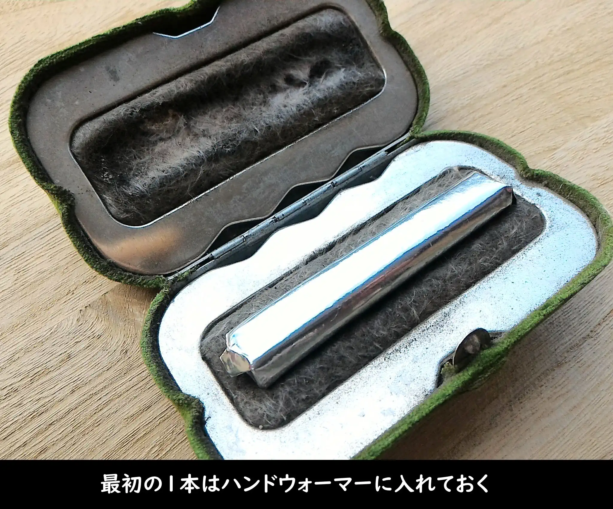 最初の1本はハンドウォーマーに入れておく