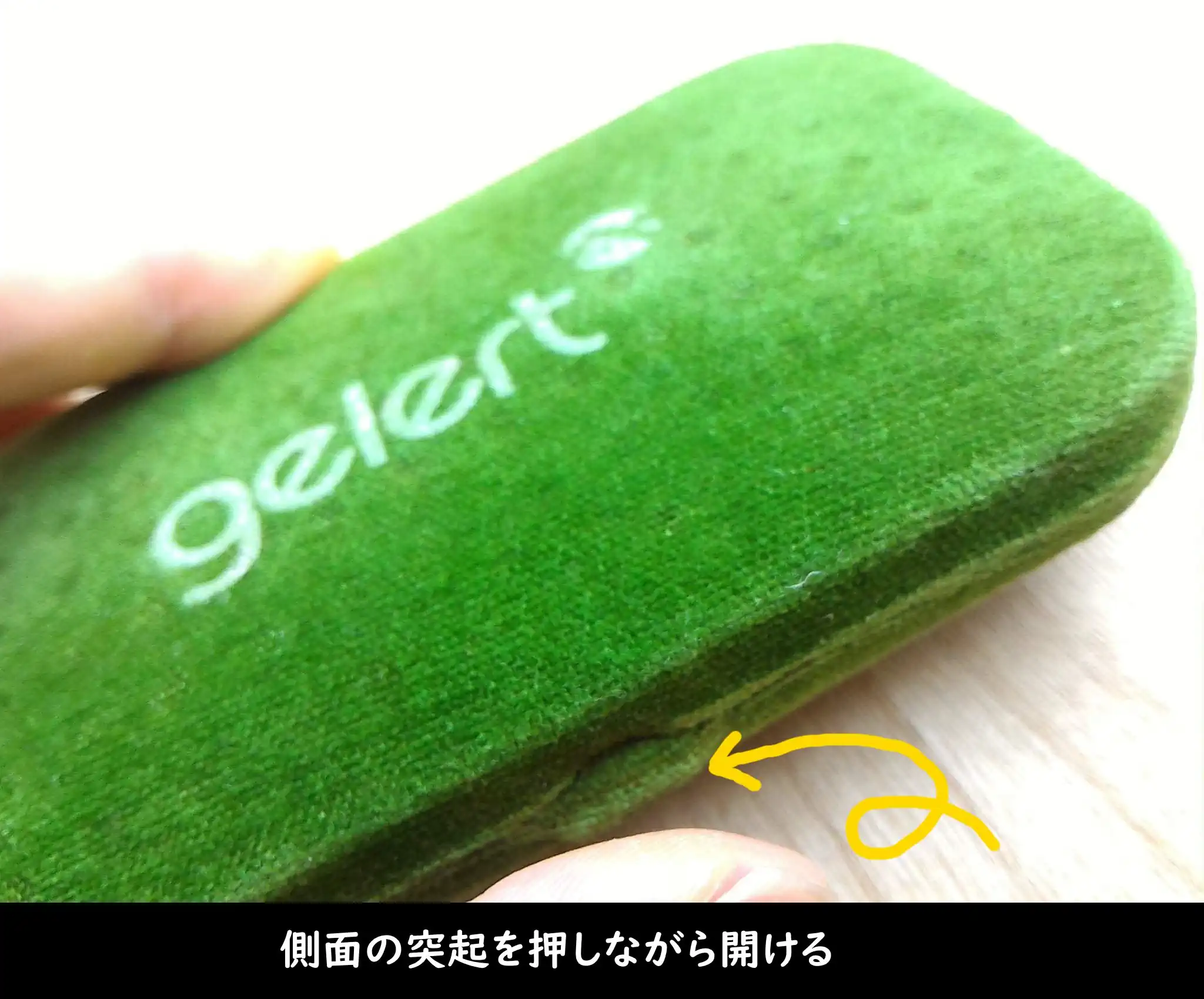 側面の突起を押しながら開ける