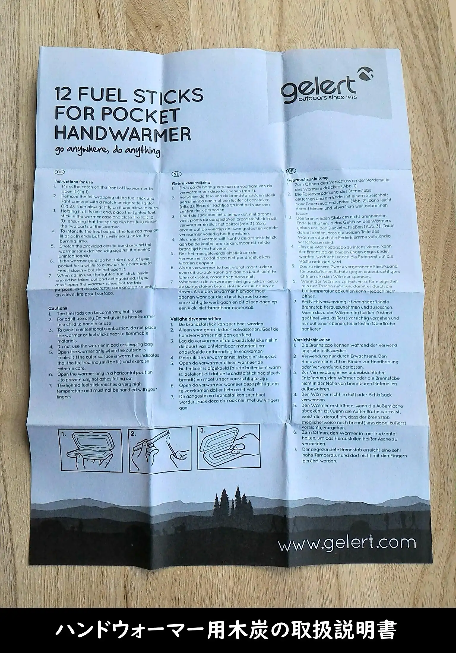 大人専用です。子供にハンドウォーマーを与えて扱わせないでください。 - To avoid unintentional combustion, do not place the warmer or fuel sticks near to flammable materials