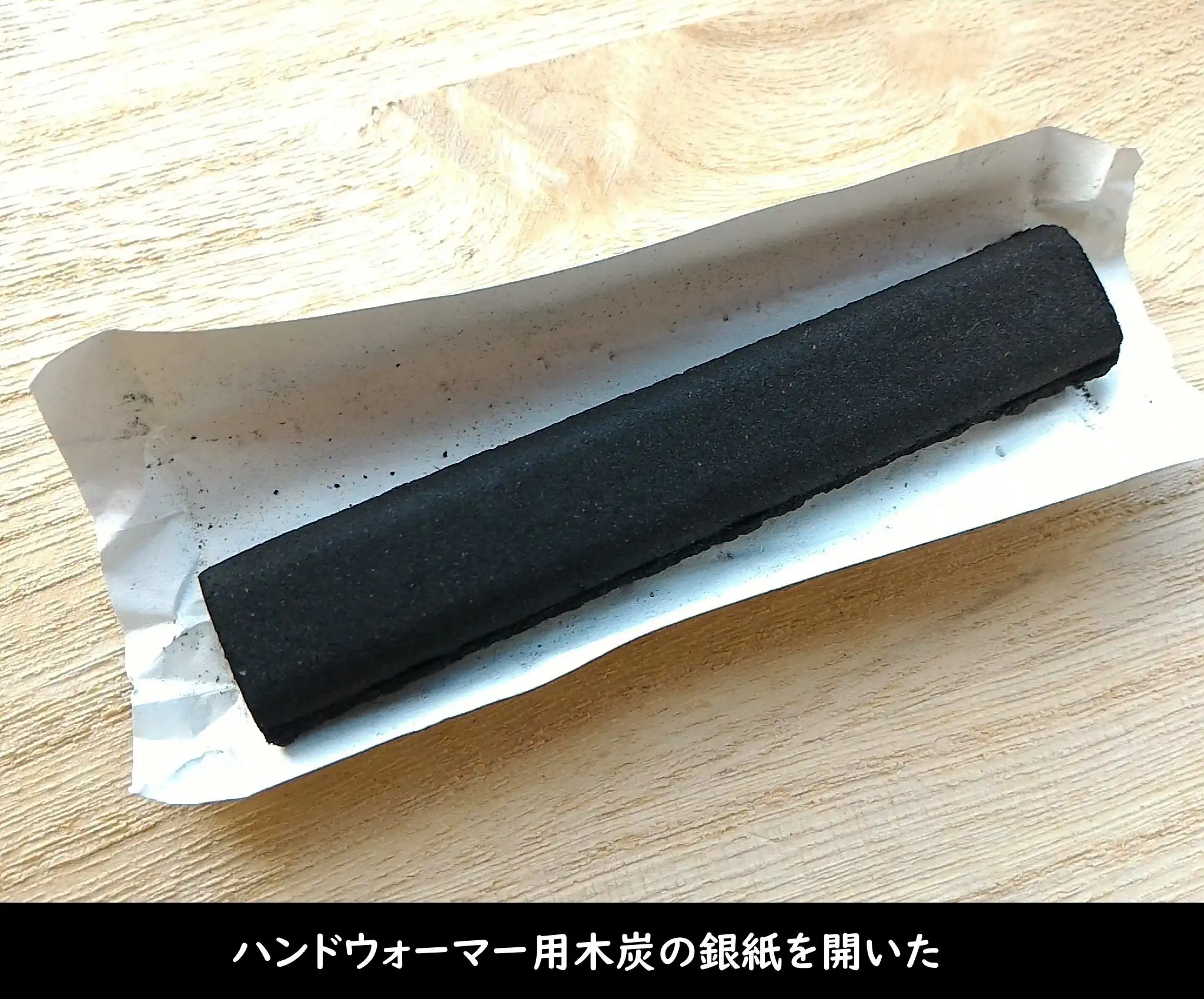 ハンドウォーマー用木炭の銀紙を開いた