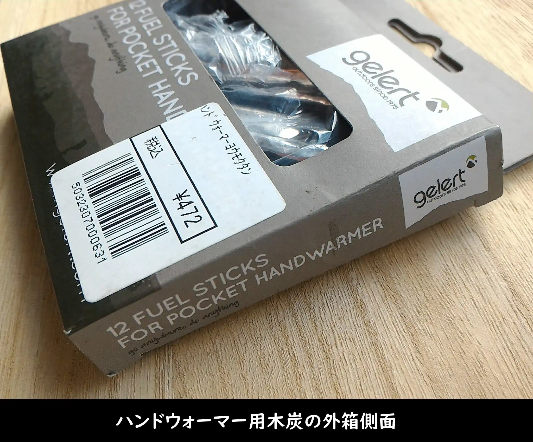 ハンドウォーマー用木炭の外箱側面