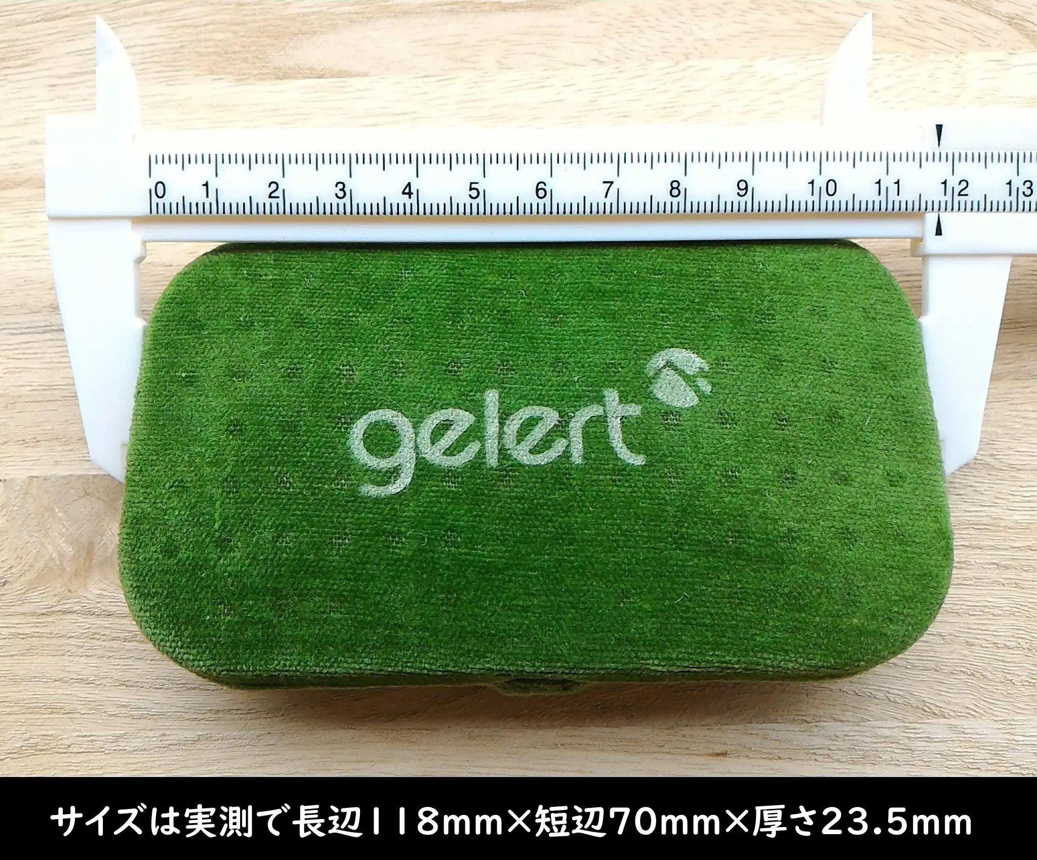 ハンドウォーマーのサイズは実測で長辺118mm×短辺70mm×厚さ23.5mmでした。