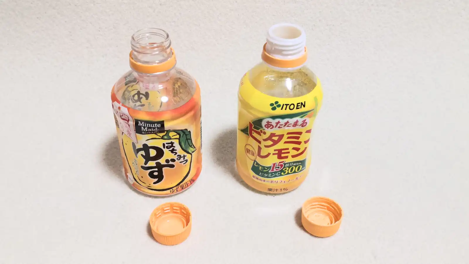 キャップの色でも見分けることが可能です。温かいお茶やホットレモンのキャップはオレンジ色になっています。