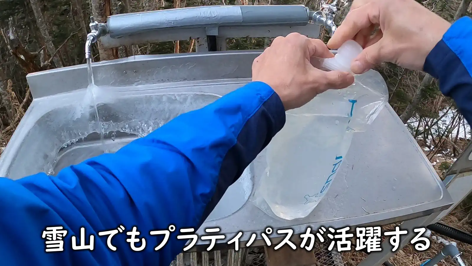 厳冬期に27日間(2016年12月24日〜2017年1月19日)、ノンサポートで北アルプスを単独縦走(親不知~上高地)した舟生大悟さんは、軽量化のためにペットボトルを携行し、湯たんぽとしても利用したそうです。