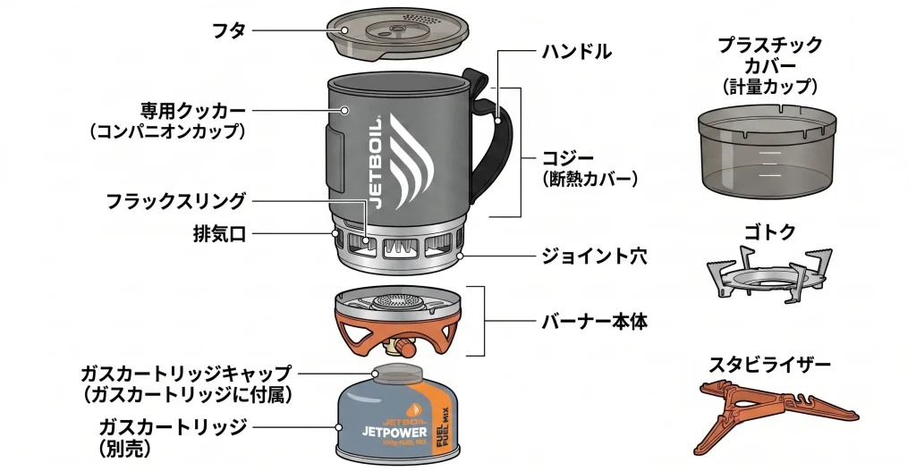 もしジェットボイルを吊り下げて使う場面が多いなら、素直に純正品を携行するのが正解かもしれません。