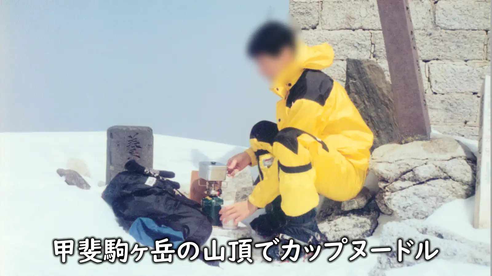 1990年代、三千メートル級の雪山の山頂で呑気にお湯を沸かしてカップヌードルを食べるの図です。EPIの四本足ゴトクがなつかしい。