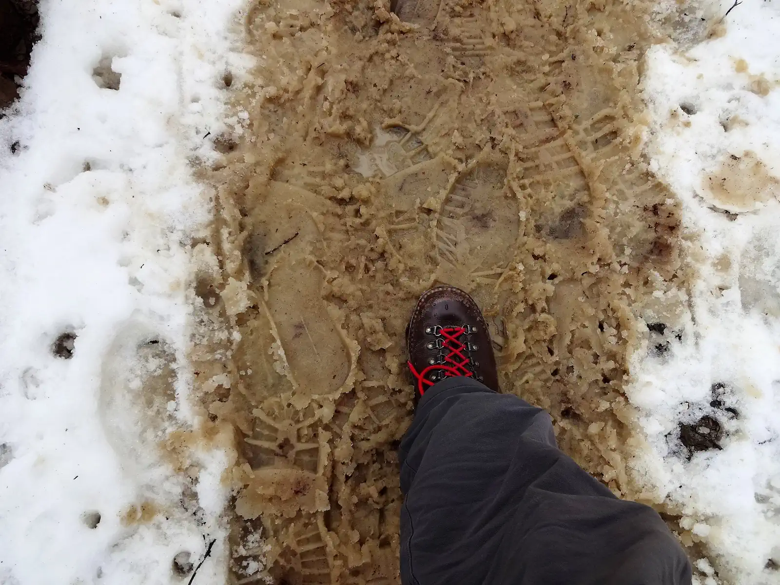 雪と泥が混じって、茶色のシャーベットになっている場所がありました。