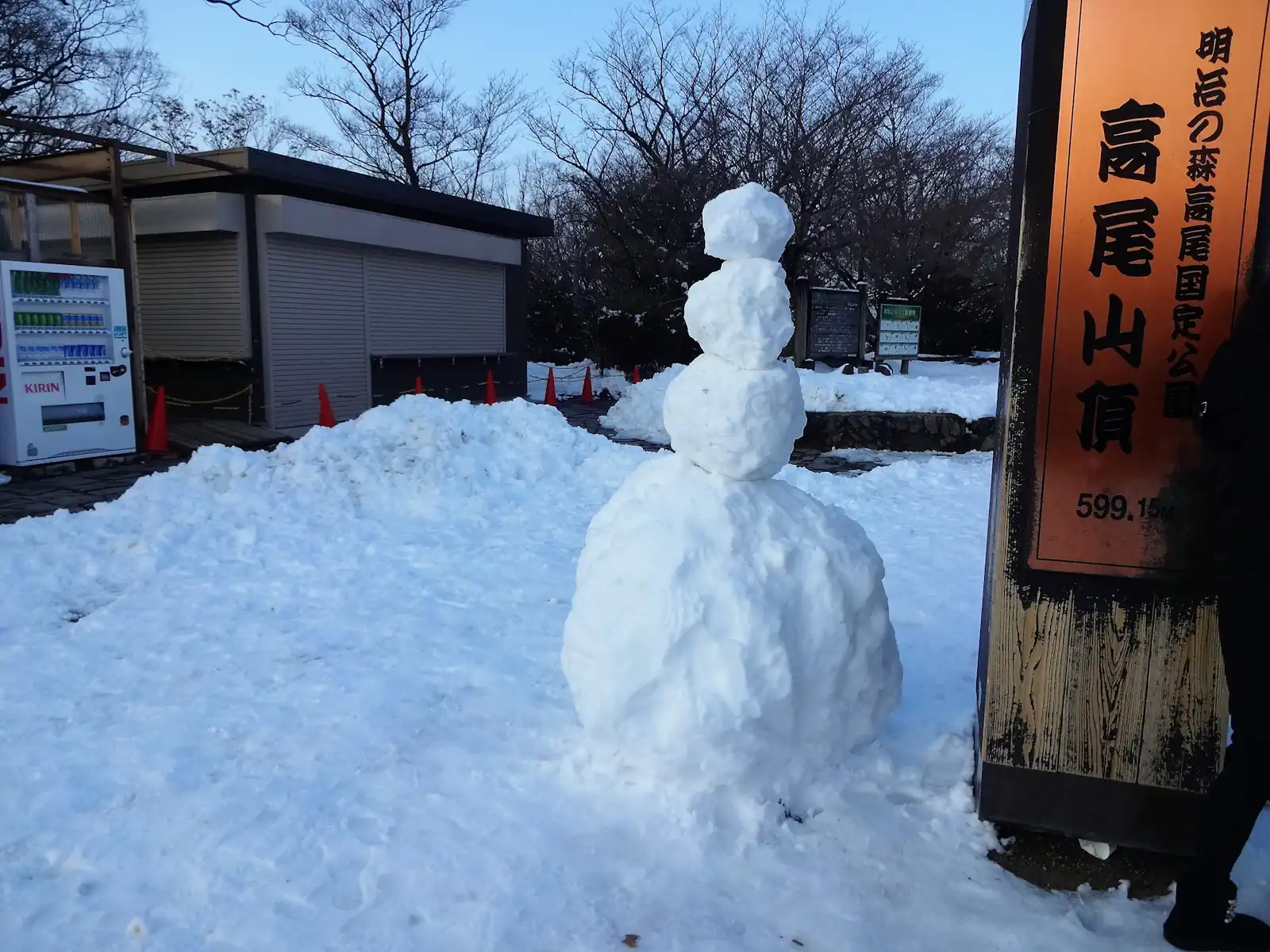 みんなが記念撮影する頂上標識の横には雪ダルマがこしらえてありました。