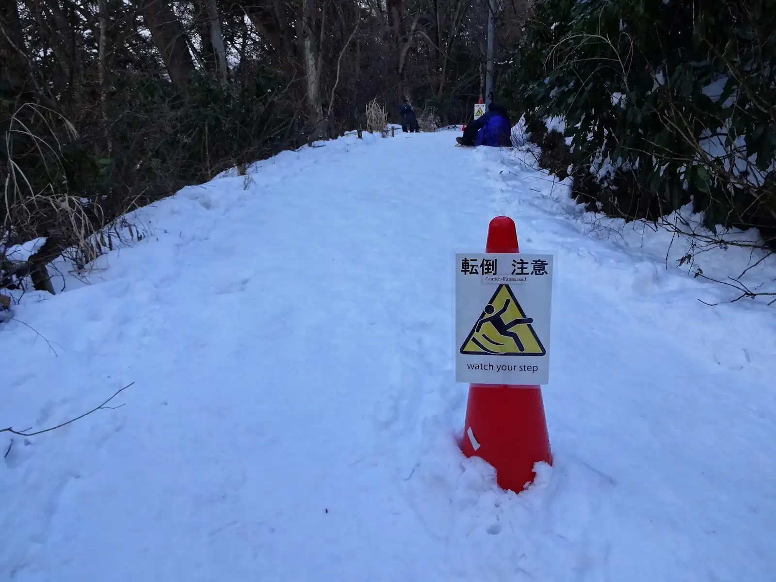2月1日から2月2日にかけて降り積もった雪に靴が若干もぐるので、前回のような滑りやすさはありませんでした。