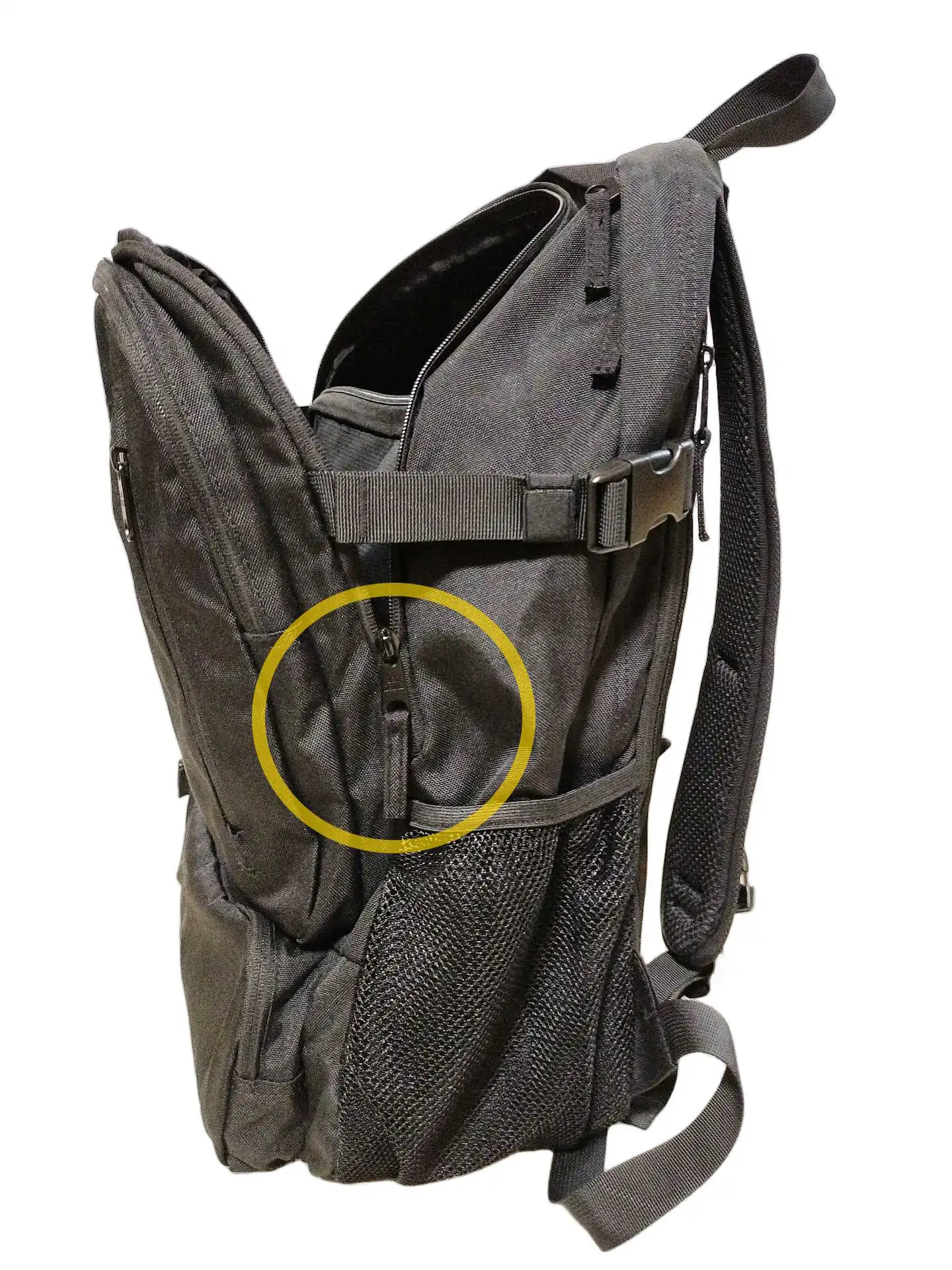 「クーラ30(KULA 30)」の実物を手にしてから初めて気づいた便利な収納がコレ。パックの上面、フラップの下に一直線のファスナーが隠れています。