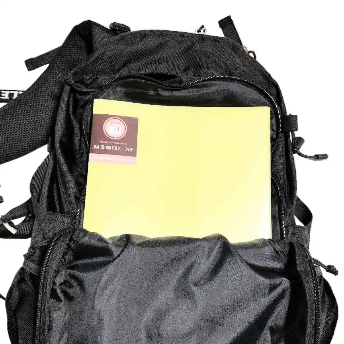 ポケット全体ではA4サイズの薄手クリアファイルが入るくらいの広さがあります。