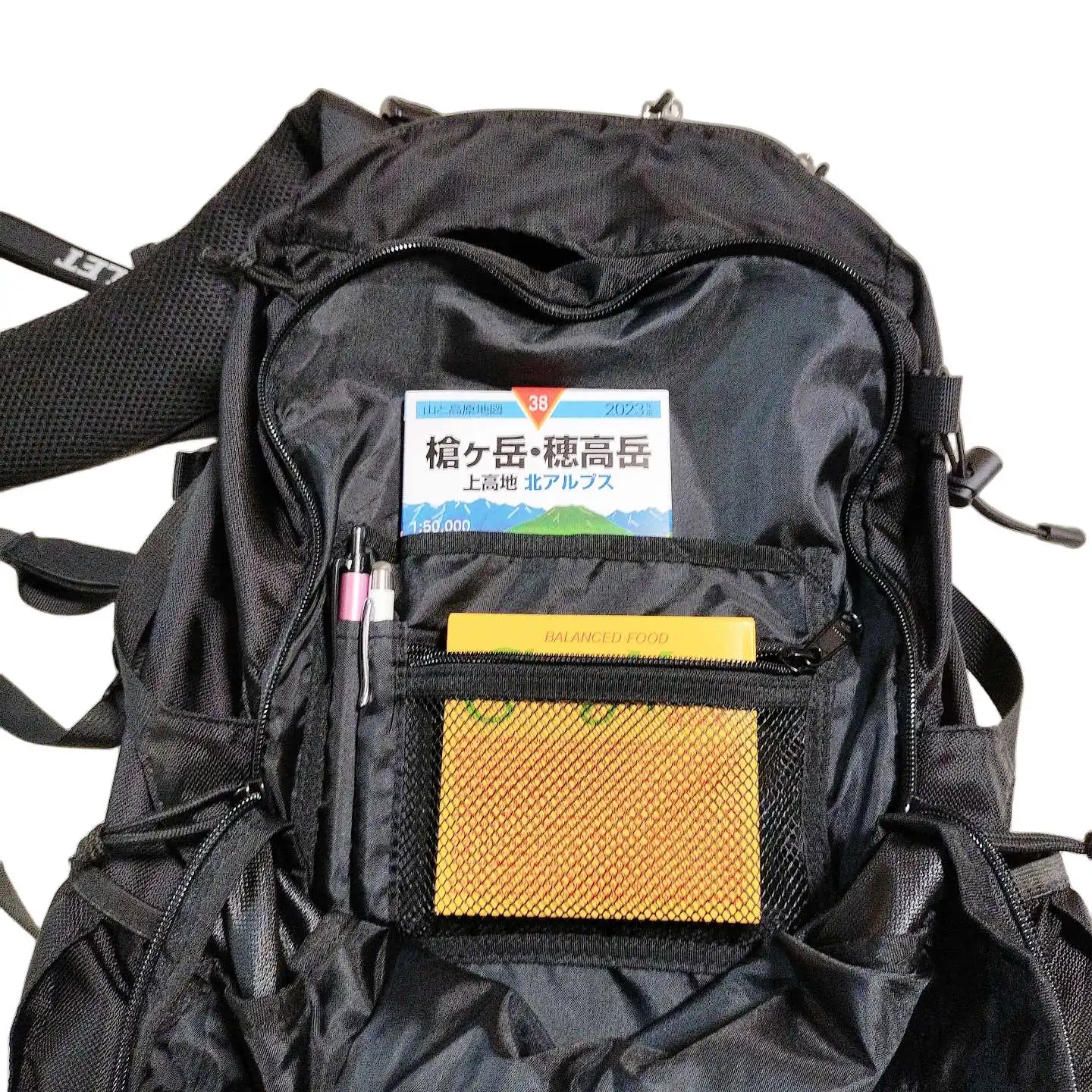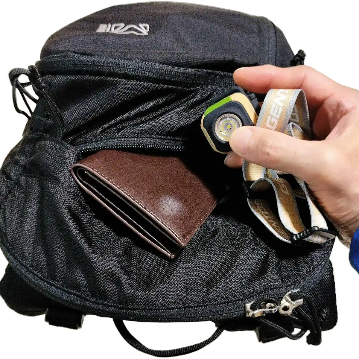 素早く出し入れしたい小物を収納するのに適しています。日帰り登山では、財布やヘッドランプ、行動食の指定席です。