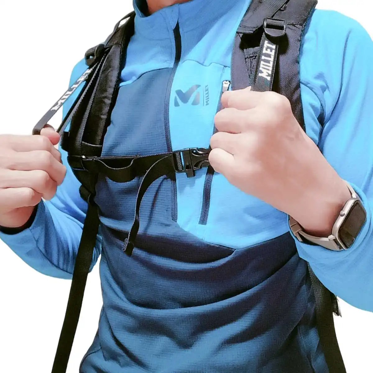 ウエストストラップは、トレイルランニングや岩稜帯の縦走で大きな動きをするとき、バックパックが背中で暴れないように固定する役割があります。
