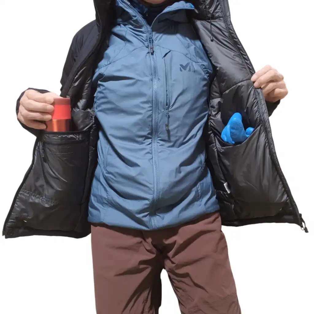 ベースレイヤー、フリース、さらにはパリパリのハードシェルを着込んだ上からでも、窮屈さを感じずに羽織れる絶妙なゆとり。凍える手で細かいジッパー操作などしたくない時、ただ「一番上に羽織れば全て解決する」という安心感は絶大です。