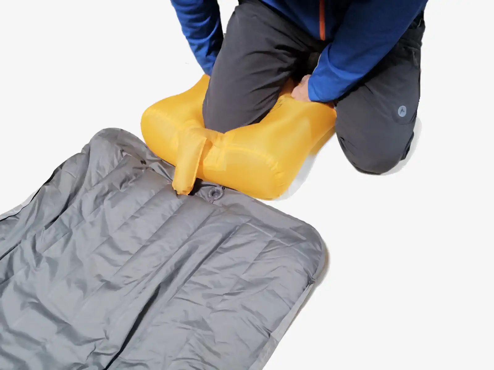 - エアマットを膨らませるのに、人間がバルブをくわえて空気を吹き込むのは重労働です。