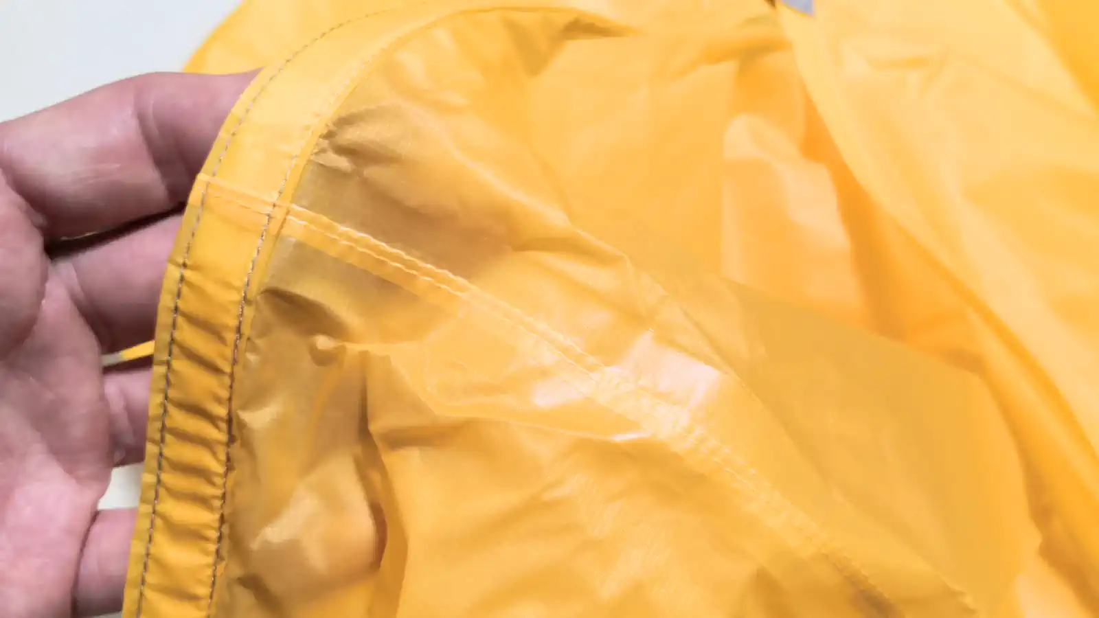 何故なら、極薄のナイロン地、極薄のコーティング、極薄のシームシーリングと切り詰めた設計となっているため、ポリウレタンの劣化にともない気密性を失いやすいからです。