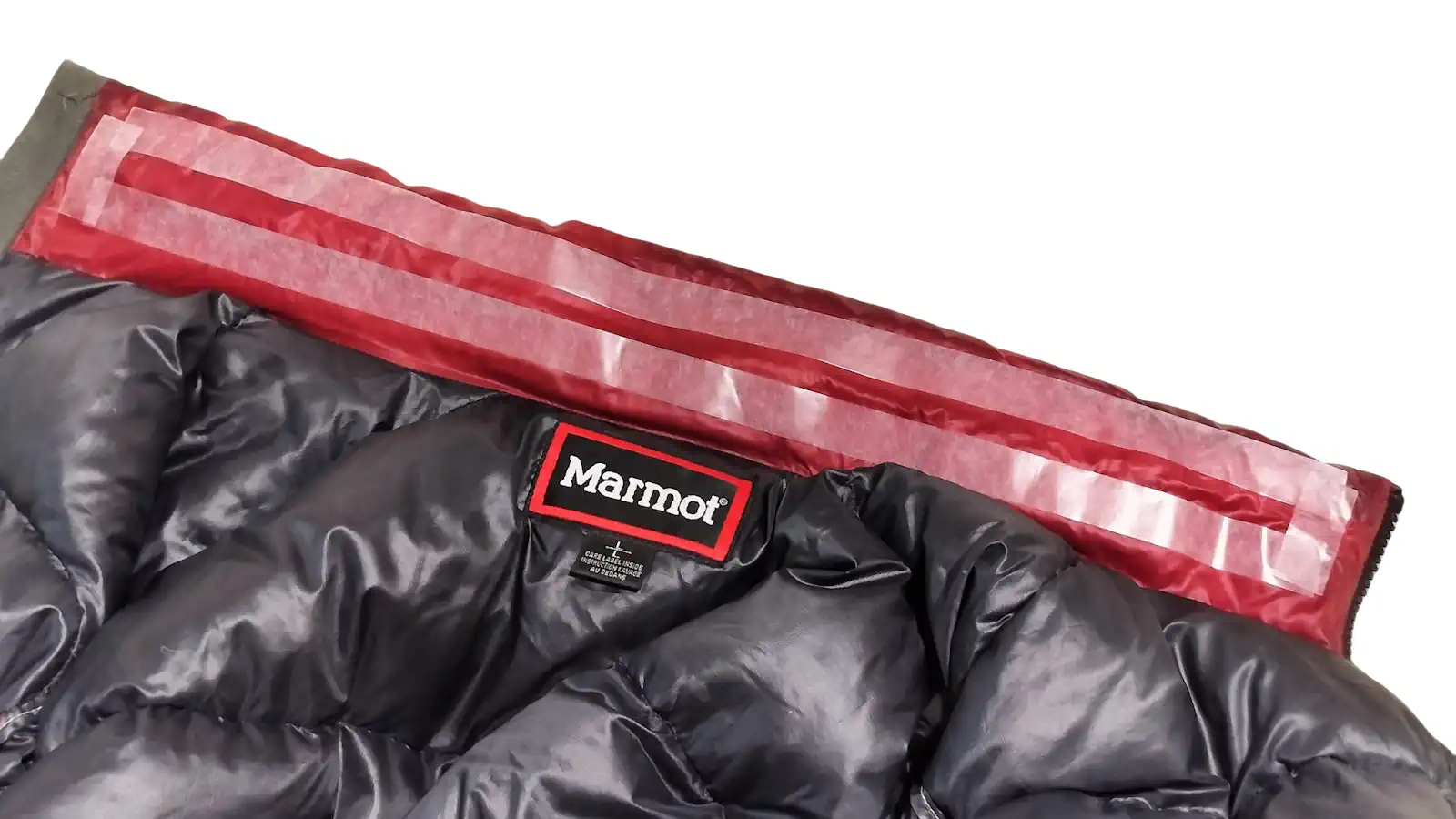 接着力が控えめなテープを利用しましたが、ふつうに着たり脱いだりするぶんにはネックウォーマーが剥がれることはありません。むしろ貼り直しをしやすいのは好都合です。首回りが汗じみてきたら、ネックウォーマーだけを剝ぎ取って洗濯すればよいのです。ダウンジャケット全体を洗濯する回数を減らすことができるでしょう。