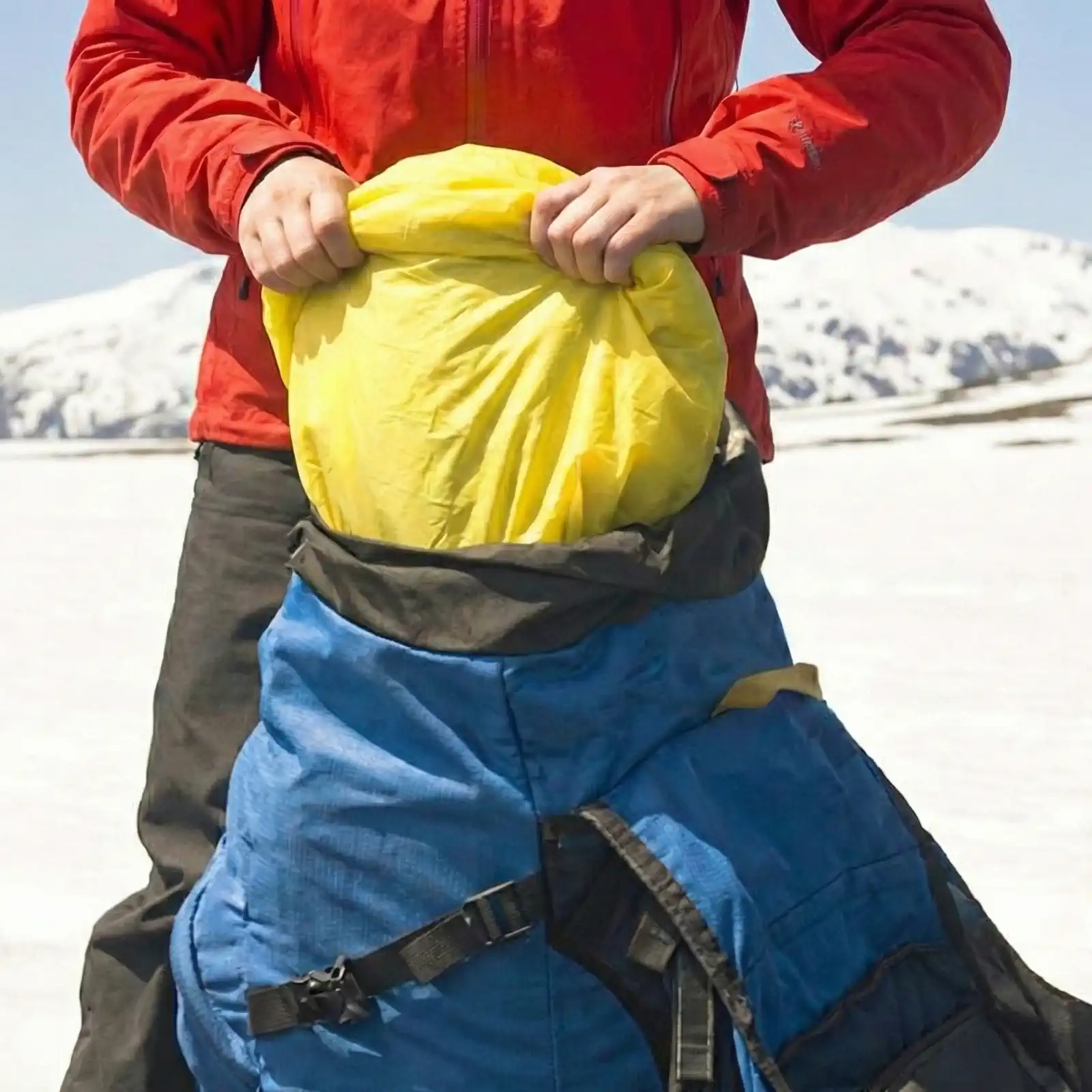 厳冬期用の分厚いシュラフを入れる場合、肩幅や胴回りが窮屈にならない余裕のあるサイズを選びしょう。水(プラティパス)や電子機器、皮革製登山靴を寒気に晒したくなければ、シュラフカバーの内側に入れるため、なおのこと余裕が必要です。