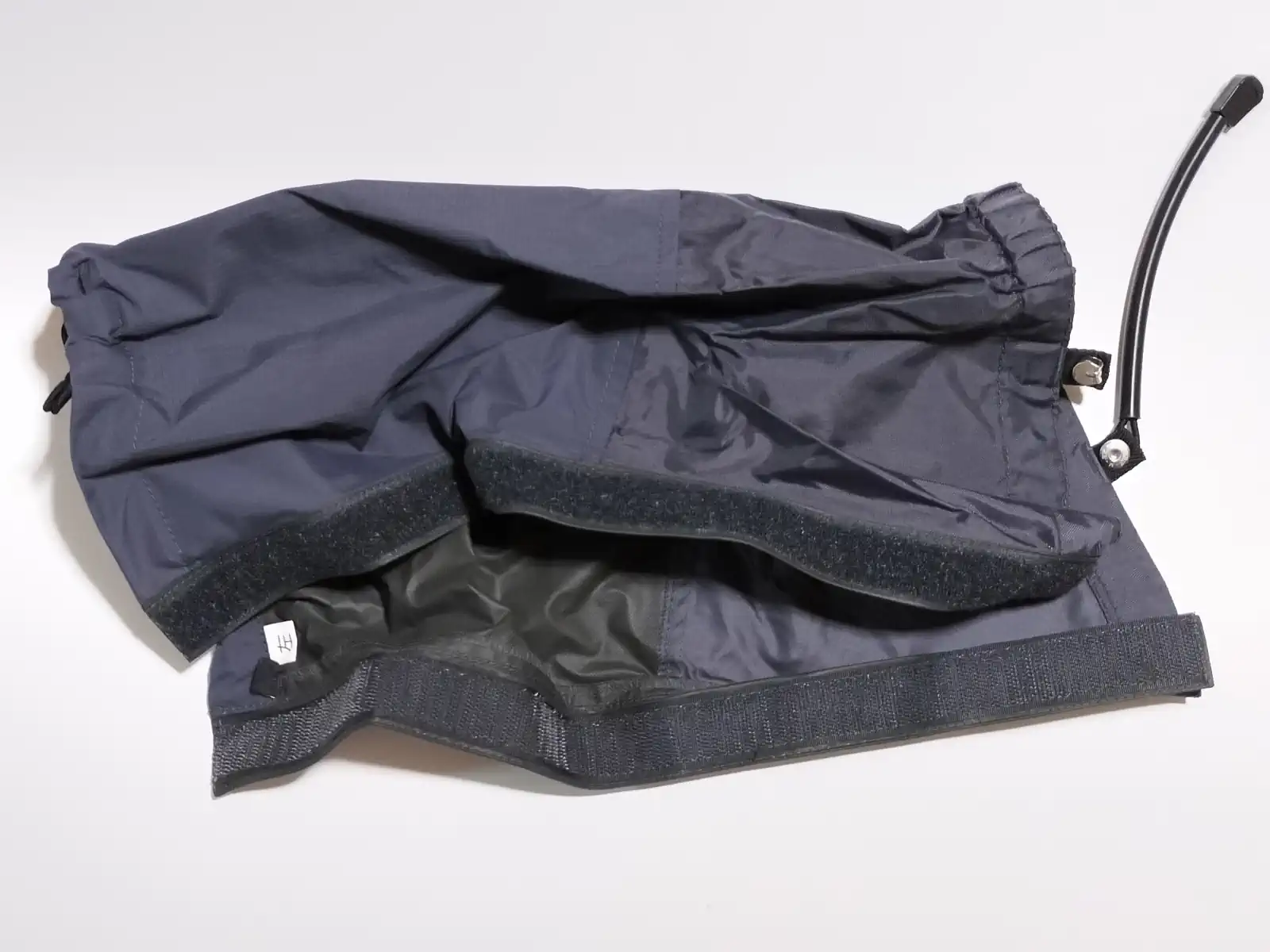 mont-bell製品と比較すると、同じLサイズでも若干小さく感じます。生地が厚めで、それが前部スカートの伸縮性を限定しているのか、靴紐の最前部にフックをかけにくいです。ズリ上がりを防げさえすればよいと割り切るなら、足首寄りに引っ掛ければよいでしょう。