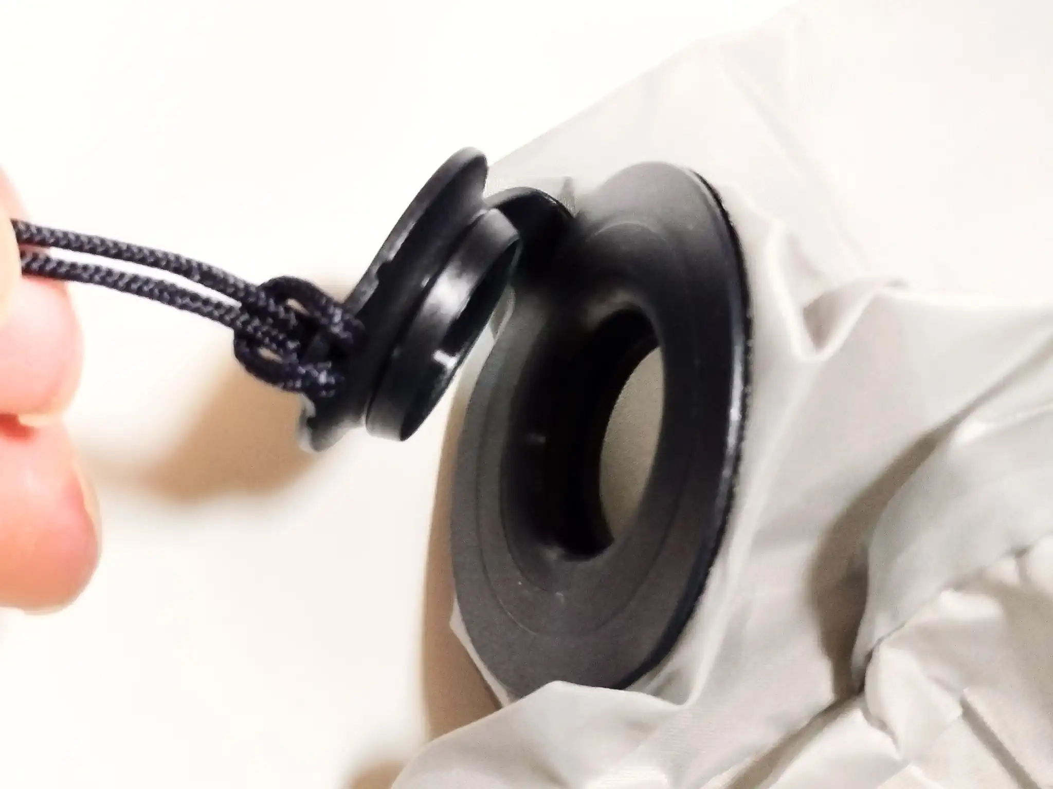 という具合で、ごく普通のスタッフサックに「バルブ接続用の樹脂製パーツ」を付けただけの代物です。
