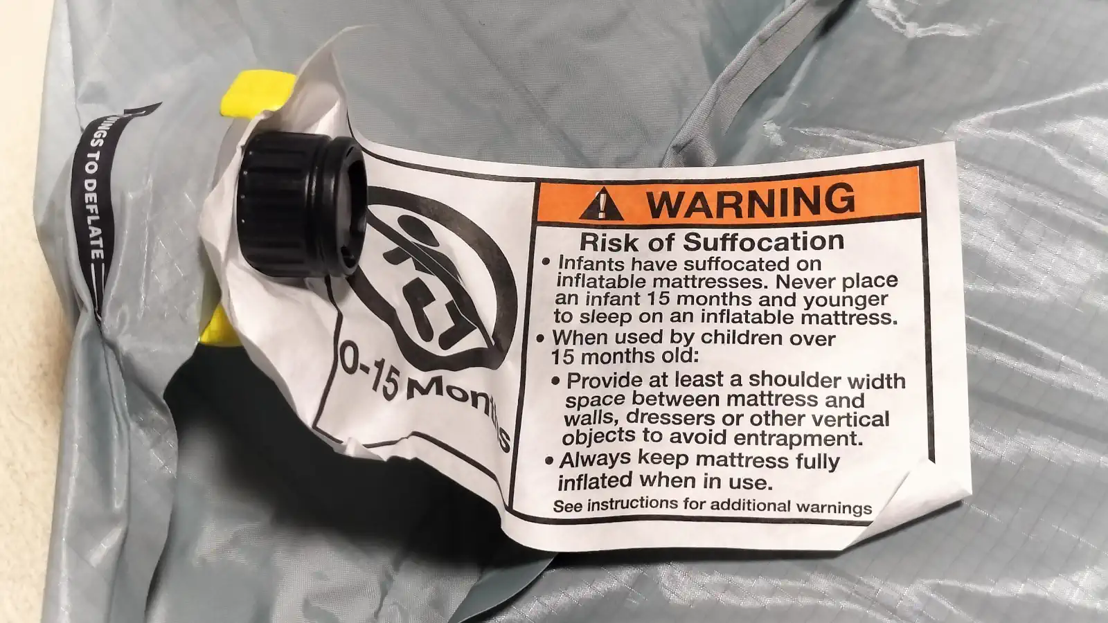 - 幼児が膨張式マットレスで窒息したことがあります。15か月以下の乳児をインフレータブルマットレスの上に寝かせることは絶対にやめてください。