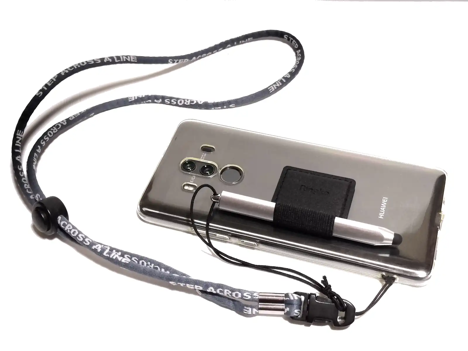 私は従来、スマホとタッチペンをいっしょにネックストラップにぶら下げていました。同様の工夫をしている人は多いはず。この方法だと、胸ポケットに出し入れするときタッチペンが引っかかって邪魔なんですよね。