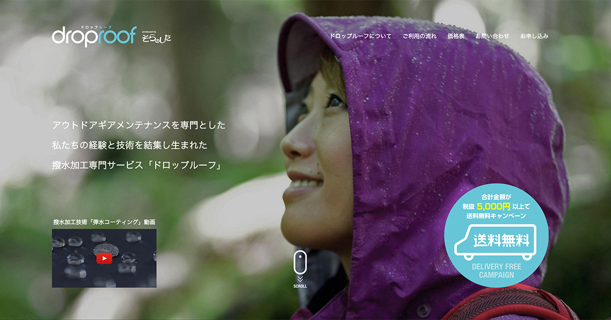 レインウェアや傘などの生地の表面に、フッ素やシリコンなどの撥水加工を施すことで、水を玉状にはじいて転がり落とすようになります。